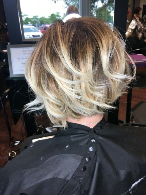 You may not be a fan of blonde or light hair colors and that’s okay! You could also try a dark bob with bayalage. It will give you the same effect, but add even more depth because that’s what darker colors tend to do!
